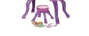 - This part bag Includes: Bracelets, barrettes, perfume bottle, crimper, curling iron, hairdryer, brush, scissors, nail polish, necklace, cards, stool and stool legs.