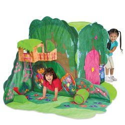 Spark imaginative adventures with this tunnel port featuring everyone's favorite bilingual friend - Dora the Explorer. A cheery "outdoor" setting provides the perfect recipe for pretend play adventures with Dora. The tunnel port provides crawl-through fun. EZ Twist Technology makes set up and taking it down a snap for parents. Measures 54" W x 50" L x 43" H.